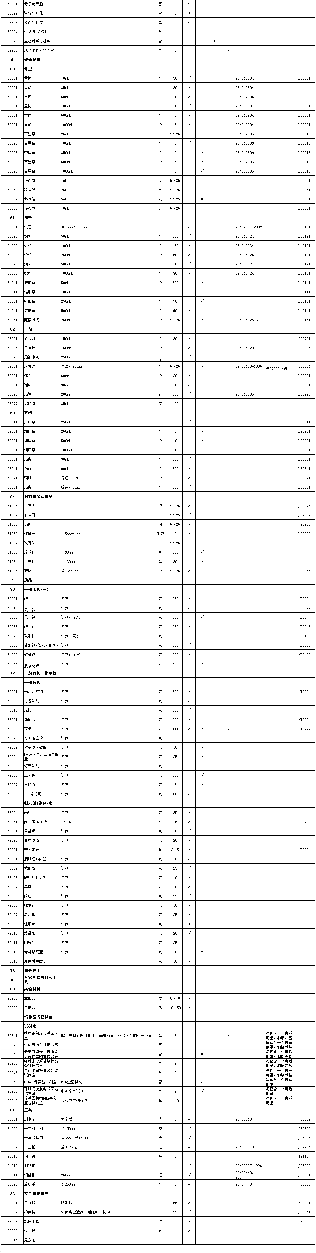 高中生物教学仪器